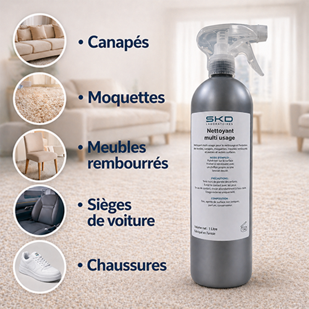 Vous recherchez le meilleur nettoyant multi usage pour nettoyer efficacement les canapés, moquettes, sièges de voiture, chaussures et meubles rembourrés .